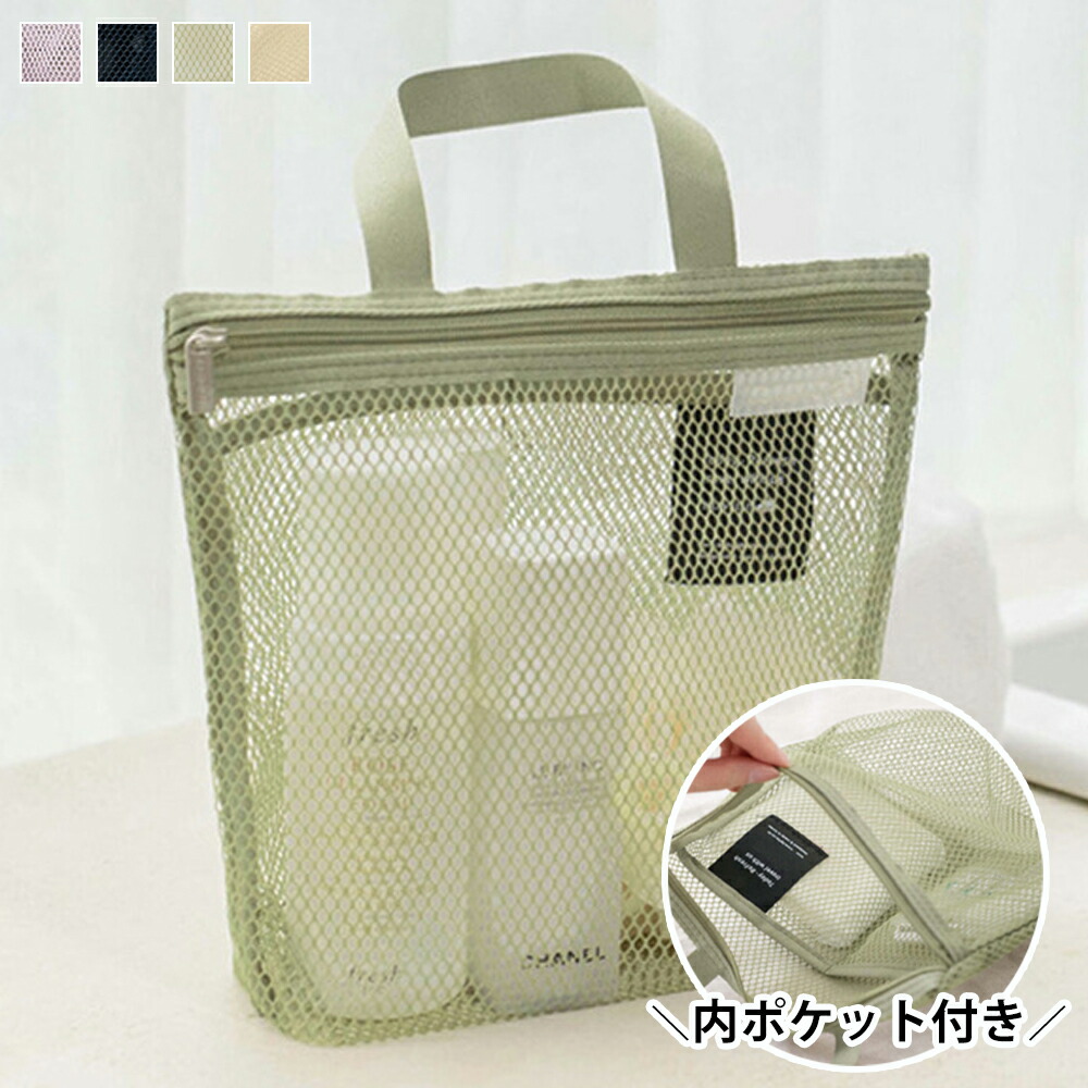 メッシュバッグ スパバッグ レディース ジムバッグ ビーチバッグ 温泉バッグ 通気性 軽量 旅行 プール シンプル 男女兼用 濡れた物も!ジム・お風呂・海で使える水切れ抜群ポケット付き