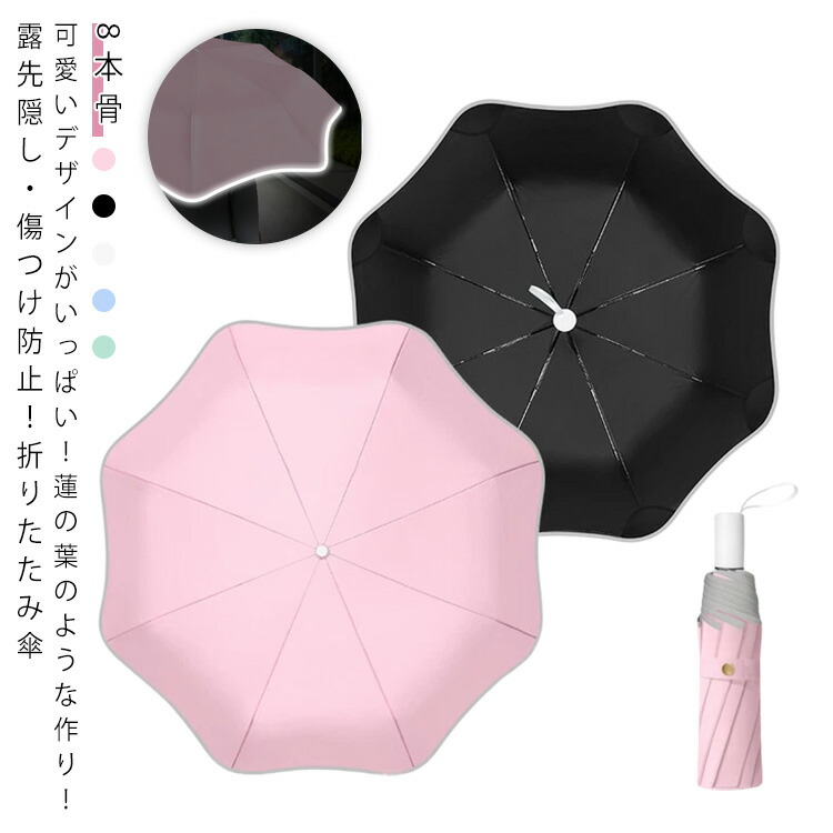 丸角 隠れ露先 日傘 折りたたみ傘 遮光 耐風骨傘 晴雨兼用 無地 可愛い 8本骨 カット傘 レディース メンズ