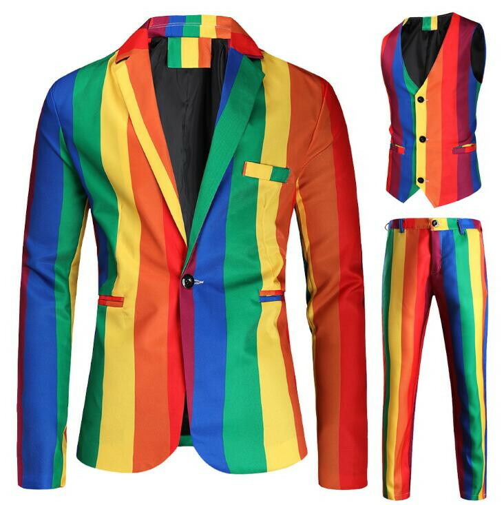 クリスマススーツ メンズ 総柄スーツ クリスマス衣装 ストライプ柄スーツ 舞台 演出服 コスチューム ♪ コスプレ カラオケ 魔術師 忘年会 演出服 タキシード 虹色スーツ
