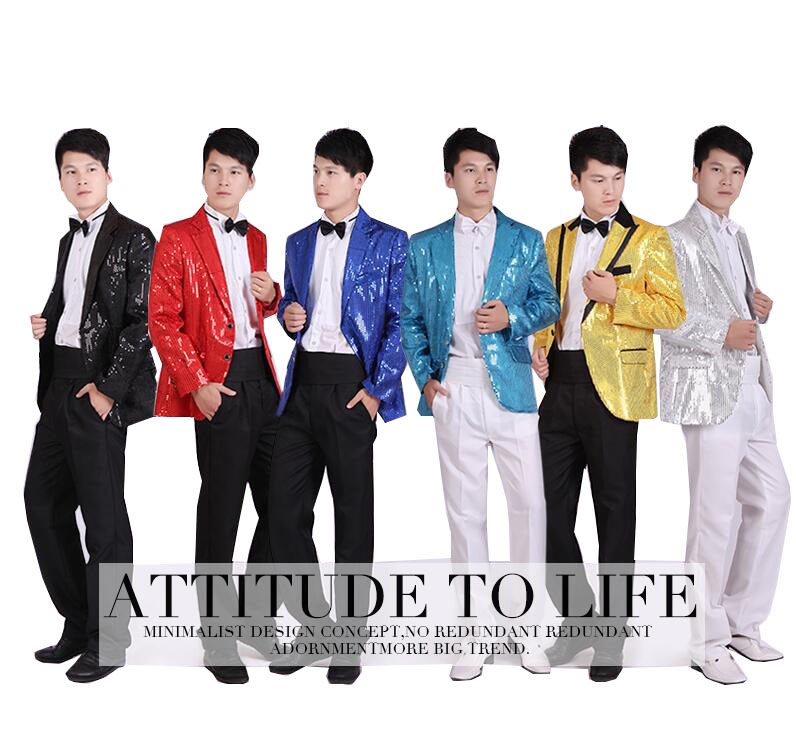 舞台ステージ衣装 メンズスパンコールスーツ 単品 セットあり 燕尾服 カラースーツジャケット パンツ タキシード 指揮者用 カラオケ衣装 ハロウィン コスプレ衣装 イエロー 赤 ブルー シルバー 黒