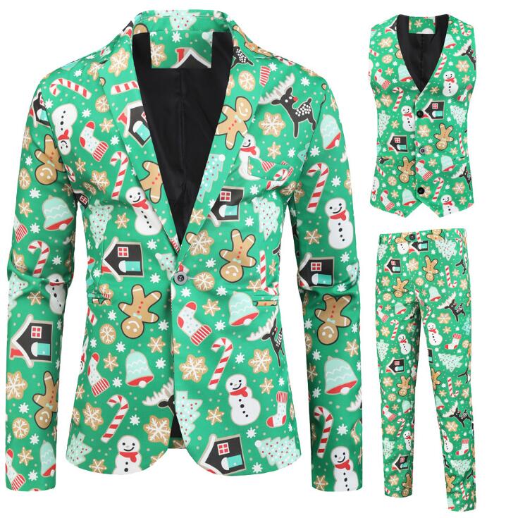 クリスマススーツ メンズスーツ3点セット クリスマスパーティー衣装 舞台 演出服 クリスマスプレゼント サンタコス シンガー カラオケ 魔術師 プリント花柄スーツ M-3XL グリー 雪だるま
