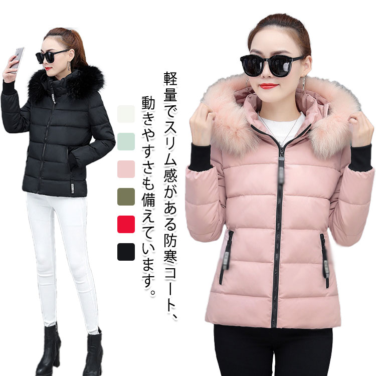 中綿ジャケット レディース 防寒コート 中綿コート ダウンジャケット アウター フード付き ショート丈 ウルトラライト 上品 防寒 体型カバー 秋 冬 きれいめ 暖かい 薄手 軽量 女性