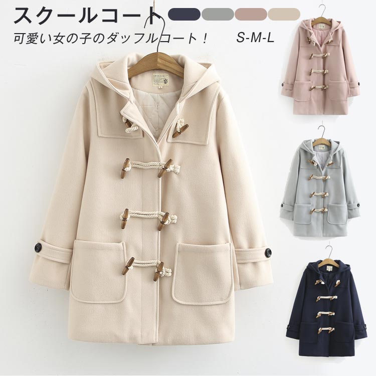 レディース 通学 スクールコート 女子 学生服 ダッフルコート 学校 ミドル丈 フェイクウール 中学生 制服 スクールウェア アウター ロングコート フード付 高校生 コート 可愛い あったか