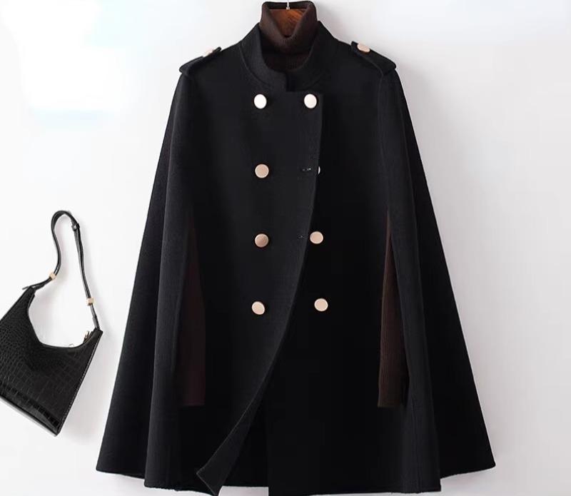 ウール コート レディース ミドル丈 秋冬 アウター 英国風 ケープ スタンドカラー レッド ブラック キャメル ダブルブレスト