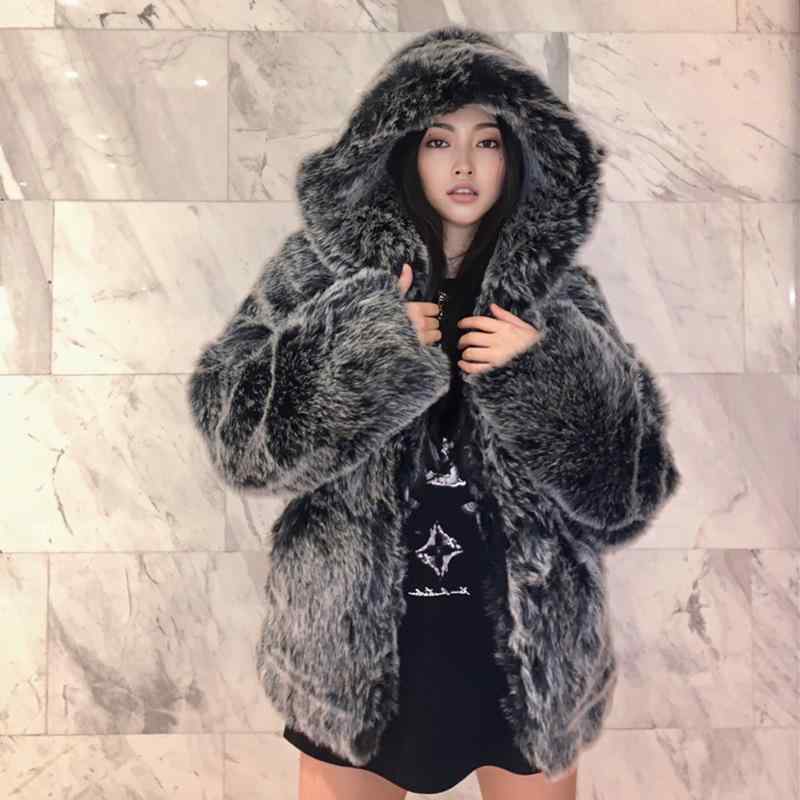 ファーコート レディース ホッキョクギツネカラー フェイクファー レッキス風 厚手 ボリューム フード付き ミドル丈 アウター エコファー 防寒 暖かい もこもこ お出かけ デイリー 冬 カジュアル
