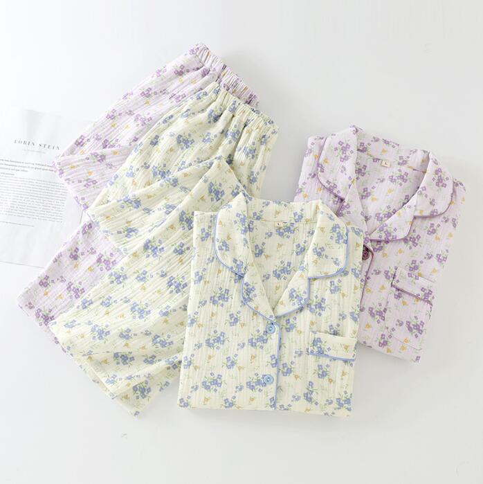 レディース長袖パジャマ 綿100% ルームウェア 春夏秋 コットンパジャマ ダブルガーゼ 女性パジャマ 可愛い花柄 部屋着 寝間着 前開きパジャマ 長ズボン レディースルームウェア