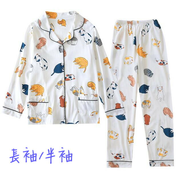 パジャマ レディース ルームウェア 前開き 上下セット 部屋着 寝間着 長袖セット 半袖セット 春夏 秋 パジャマ 女性ルームウェア カットソー コットンパジャマ 猫柄 可愛いパジャマ -