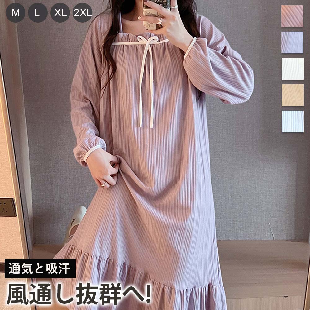 5色 新作 秋冬向け ロング丈 ネグリジェ ワンピース パジャマ ゆったり 大きめ 体カバー ルームウェア