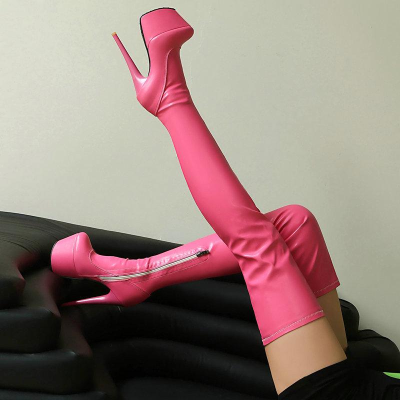 ロングブーツ レディース 女性用 ストレッチ スリム 美脚 ニーハイ サイハイ オーバーニー 超高ヒール ピンヒール プラットフォーム セクシー 欧米風 ステージ ナイトクラブ パーティー ダン 舞台