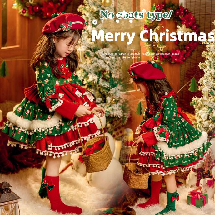 女の子 クリスマスワンピース クリスマス コスプレ衣装 可愛い ロリータワンピース プリンセス風 ボリューム ティアードドレス 子供 コスチューム グリーン 変身仮装