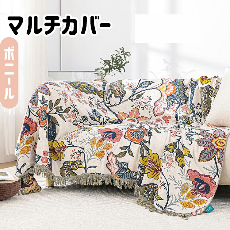 マルチカバー 両面使える ソファー ペット 花柄 ファーマット マルチクロス 水洗い ギフト 引っ越し祝い 多機能 おしゃれ 毛布 肘あり バスマット テーブル フリンジ付き 対応 カバー 四季通用