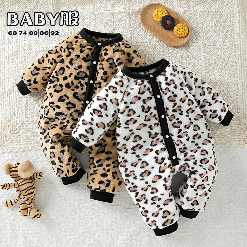 子供 ジャンプスーツ ロンパース もこもこ ヒョウ柄 女の子 男の子 68 74 80 86 92
