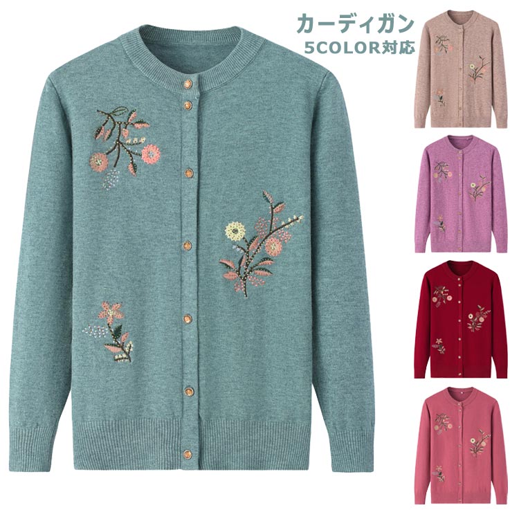 ニットカーディガン 花柄 レディース セーター 婦人服 柔らか 保温性 暖かい 高齢者 ゆったり 体型カバー カジュアル ブラウス コート お誕生日プレゼント 50-70代 シニアファッション 羽織り