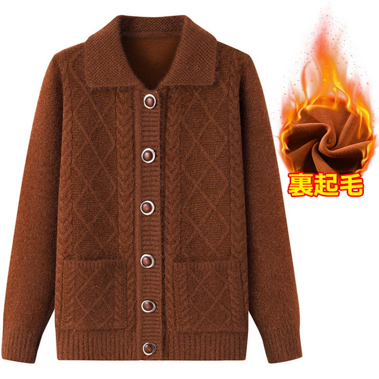 秋冬 おばあちゃん用裏起毛ニットカーディガンです。保温効果は抜群!伸縮性も◎ パープル キャメル色 ワインレッド グリーン ピンク