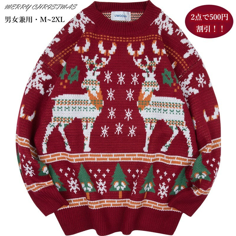 クリスマスセーター レディース メンズ ニット セーター 可愛い お揃いセーター 着痩せ おしゃれ 上着 暖かい 防寒 冬服 秋服 クリスマスツリー柄 長袖 サンタクロース ダサい
